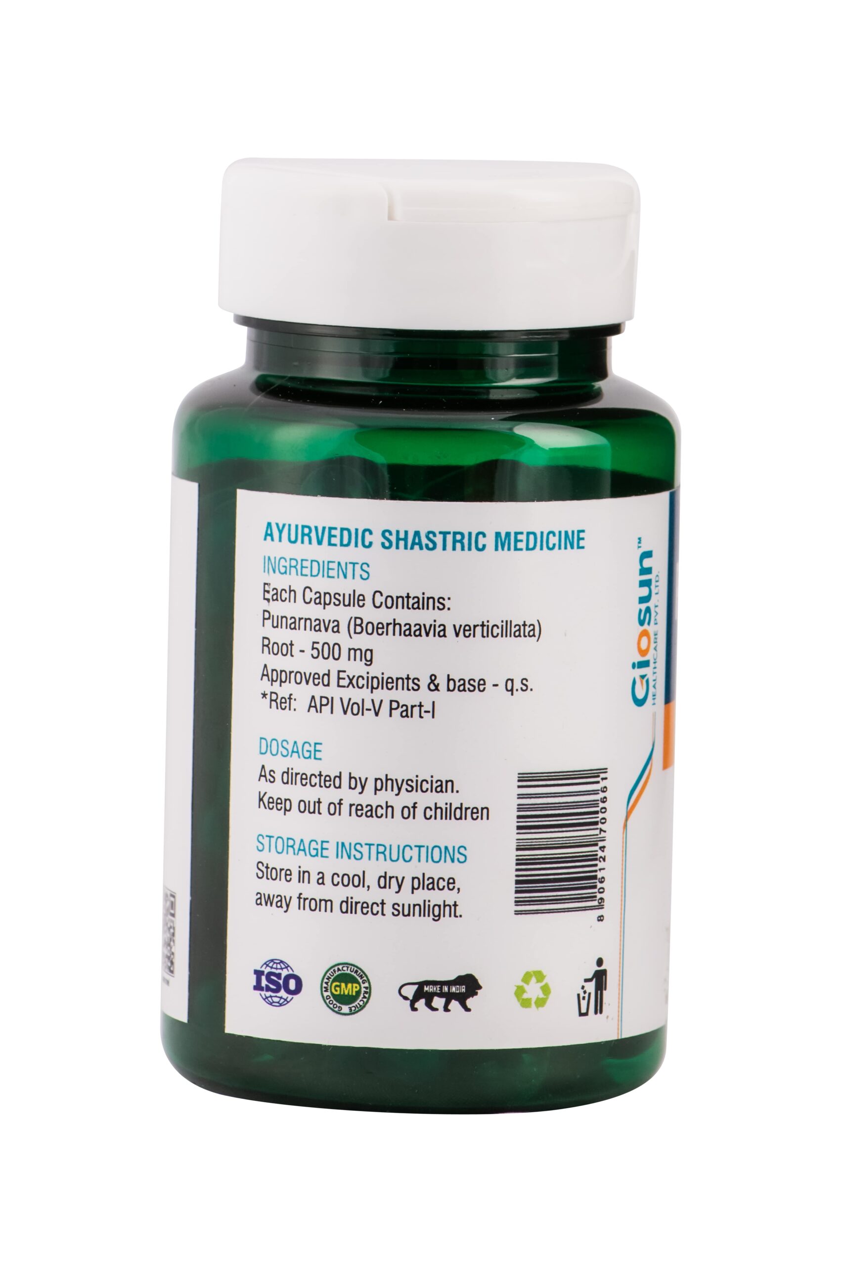 Helps to Relieve Inflammation, Lose Weight, With Luke Warm Water 1-2 capsule twice a day or As Directed by Physician Need to Consult Your Doctor While using in the following conditions like Pregnancy, Breastfeeding Giosun Healthcare Private Limited 55.5mm (L) x 55.5mm (W) x 95.5mm (H) 55 Degrees 36 Months